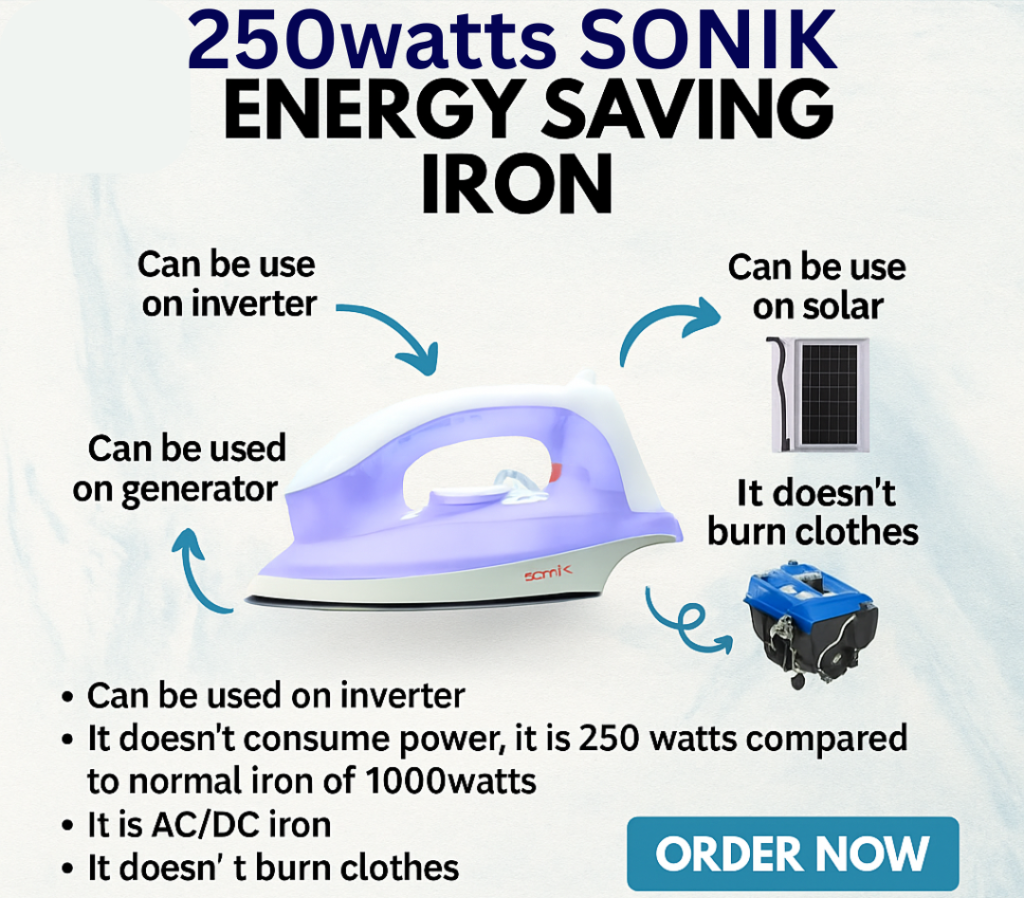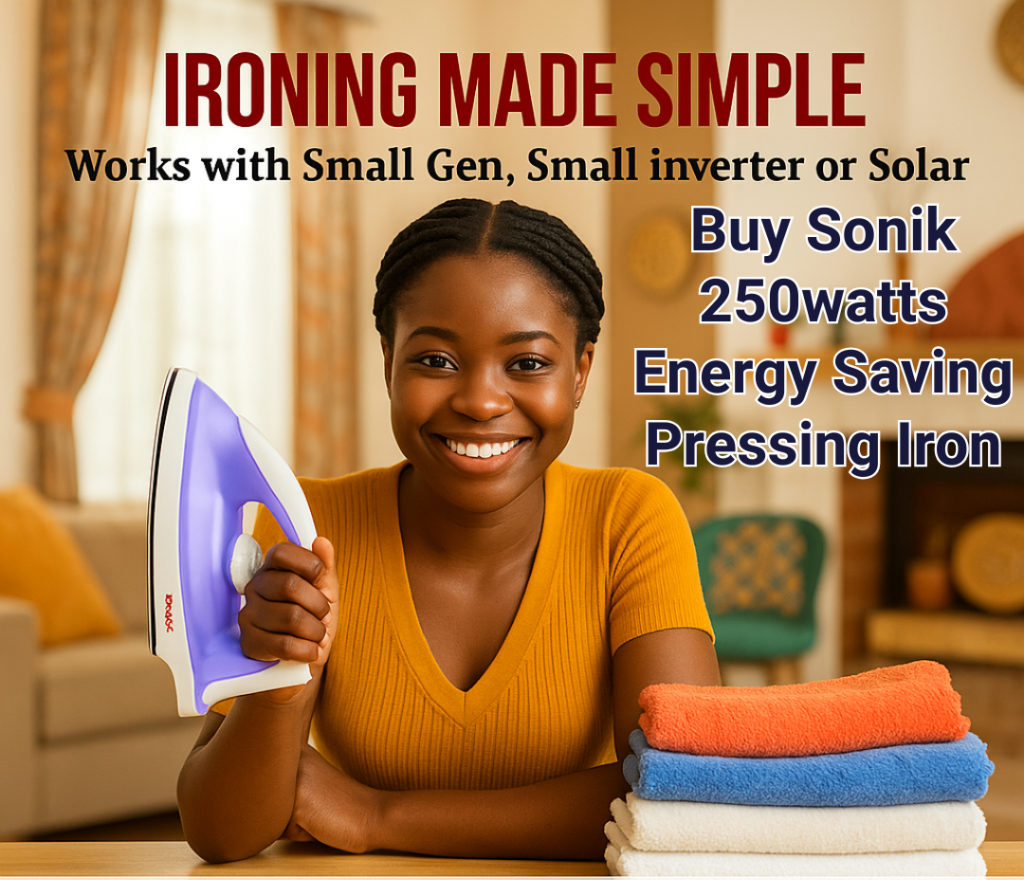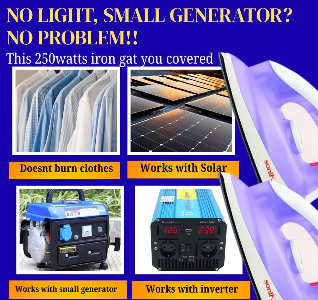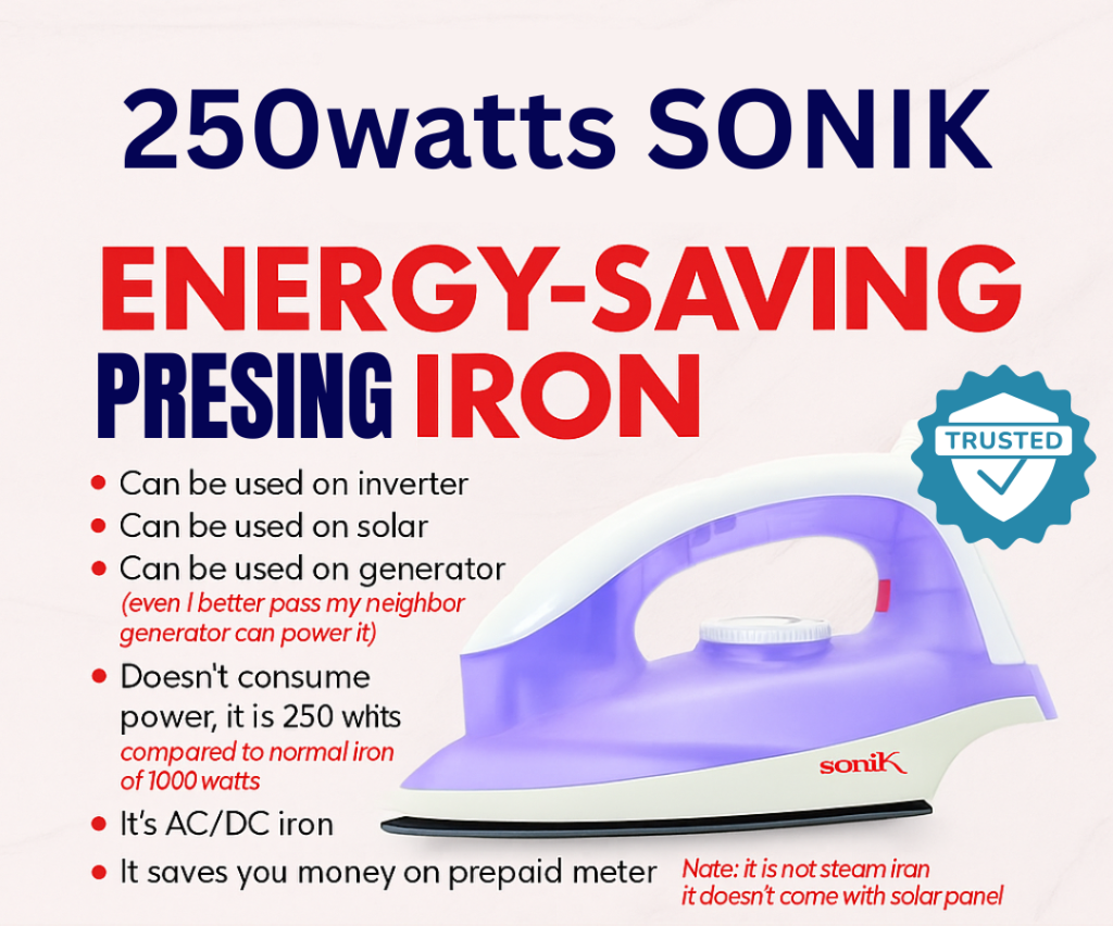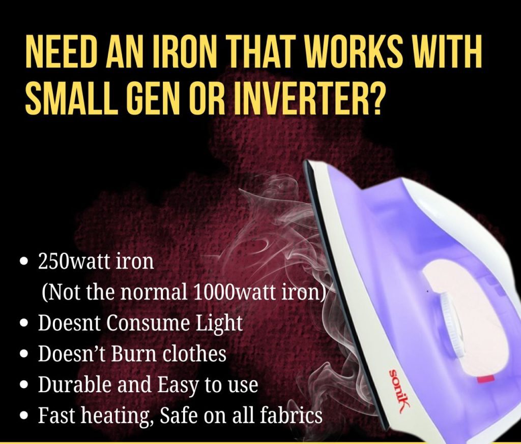 Let’s be honest: using a standard iron (1,000W to 3000W) does not make any sense and is not clever at all in a country where NEPA is unpredictable, you have little generators (I better pass my neighbor), and prepaid meter units disappear like breeze. The Sonik 250W Energy Saving Dry Pressing Iron is revolutionary because of this.